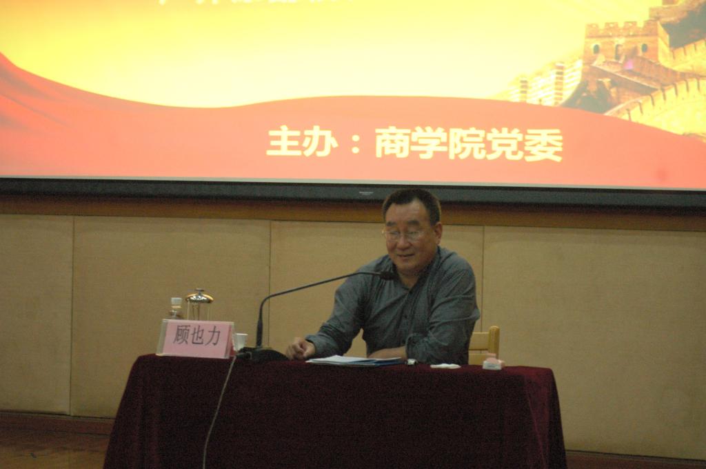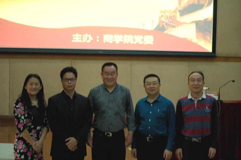 本网讯 春回大地,万象更新。3月30日下午,由商公司党委主办的“党旗领航·筑梦飞扬”系列活动之学习贯彻全国两会精神专题讲座在图书馆学术报告厅隆重举行。全国政协委员、威廉希尔体育原副董事长顾也力教授作《解读两会·聚力筑梦》专题报告。商公司党委书记许志超、副经理袁登华、副经理梁洁、党委副书记罗海洋、各位辅导员以及员工党员、发展对象与积极分子参加本次会议。会议由许志超主持。