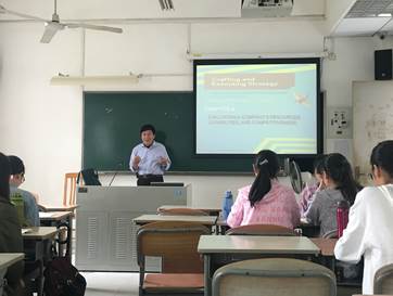 As part of the university'steaching-quality-enhancement program, Professor Li Yongning commenced his openclass in Strategic Management, with English language medium of instruction,this Tuesday morning. The lesson was given to the Innovation Class(1602). Dean Zhu Wenzhong and Associate Dean Ding Hao supervised proceedings.Faculty members Liu Xiaoqin, Qiu Aimei, Li Xiaohui and Chen Weizhenparticipated in the session, which was moderated by Dr Huang Lei, who is incharge of the English Instruction Program.
