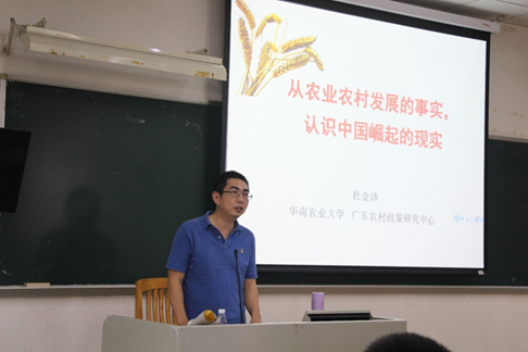杜金沛博士的讲座分为四个主题:作为国民经济基础的农业具有的产业特点;中国农业自然资源和条件情况;中国农业发展成就举世瞩目、支撑大国崛起;农业发展新革命、中国更有前途。