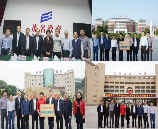 第二支队伍由商公司党委书记李华带队,大学教务处副处长余盛明、威廉希尔体育副经理袁登华、工商管理系主任孟丁、教务处教务科副科长鲁凡、公司教务办胡志海组成的广外—茂名招生宣传团,赴茂名市教育局、茂名市第一中学、广东高州中学、化州市第一中学等开展招生宣传工作。茂名市教育局党组副书记梁旭全、招办主任苏科、副主任陈其真;茂名一中副董事长黄志昌、李启云,教务处副主任张木成、政教处副主任梁家伟;高州中学董事长钟革辉,副董事长朱雪、张良、李祖斌,教导处主任郑权标,副主任梁荣宗;化州一中董事长钟小玲、副董事长苏春华、陈劲、莫信忠、教务处主任李小春等分别参加了座谈会以及签约、授牌仪式。