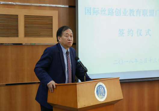 隋广军对国际丝路创业教育联盟广州基地落户广外表示祝贺,对致力于国际丝路创业教育联盟建设的王重鸣教授表达感谢和致敬。他褒赞了公司近年来创新创业取得的优异成绩,调强国际丝路创业教育联盟对高水平大学建设和公司MBA教育事业发展的重要意义。他表示,广外将发挥学科优势,整合全校资源,做好国际丝路创业教育和国际化人才培养工作,为国家“一带一路”倡议做出更大的贡献。