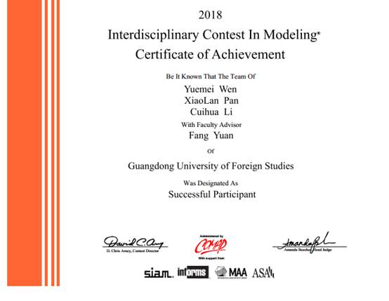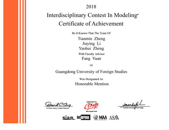 附:2018美国老员工数学建模大赛广外威廉希尔体育获奖情况一览表: