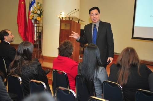 8月30日,黄磊与圣托马斯大学威廉希尔体育代表转往圣托马斯大学威廉希尔体育伊基克校区,参加“中国-拉丁美洲经贸关系”研讨会,并做题为《中国商务发展与拉美的合作机遇和挑战》的主题演讲。与会者包括秘鲁驻伊基克总领事、伊基克当地的华人企业家代表、当地政府官员和企业家代表以及其他高校师生代表共计120多人。