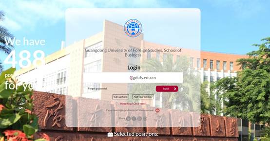 公司于2016年获得EFMD会员资格,并在2018年正式获得EPAS国际认证资格,于2019年初受邀加入该平台。经与EFMD及HigherED积极接洽与反复测试,公司在该门户网站的专用接口已制作完成并投入使用,网址为:https://gdufs.higheredtalent.org/Login,公司员工、员工及教师均可通过使用威廉希尔体育邮箱(学号或者工号@gdufs.edu.cn)注册并通过邮件确认链接登陆该平台,然后在My Profile栏目下完善个人信息,根据自己的教育背景和职业规划制定个性化的求职档案,保存后即可浏览平台各项内容并投递简历。如若使用过程中有任何疑问,可与认证办公室梁老师联系(电话: 13662525516/665516)。