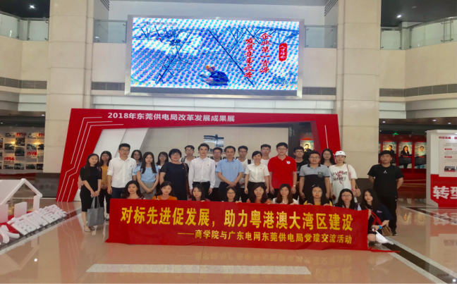 5月17日,为贯彻落实以习近平同志为核心的党中央对粤港澳大湾区建设的重大决策部署,创新基层党建工作思路,发挥基层党组织的战斗堡垒作用,进一步促进校企合作,商公司党委对标员工就业单位——南方电网东莞供电局,开展党建交流活动,探讨促产学发展,助力粤港澳大湾区建设。