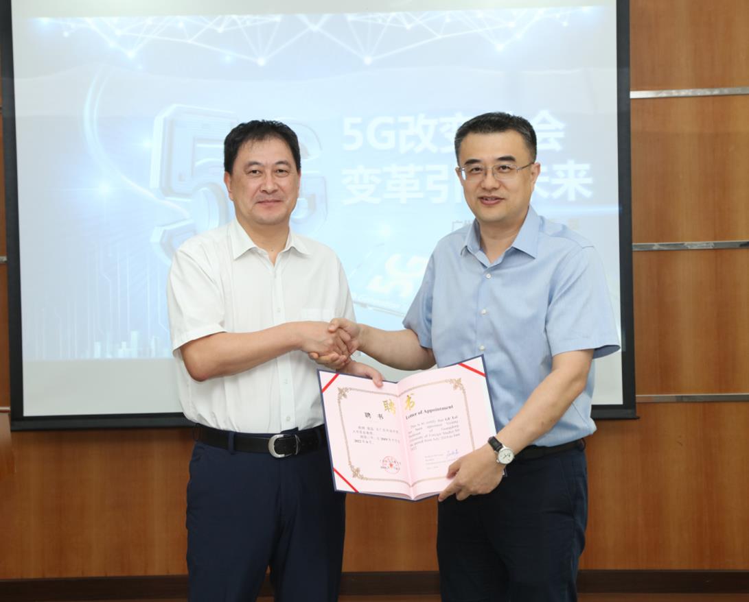 10月13日,公司客座教授聘任仪在威廉希尔体育MBA教育中心丝纺讲堂举行,公司党委书记隋广军为中国移动广州公司总经理葛磊颁发客座教授聘书。副董事长焦方太、广州移动公司副总经理李湘及威廉希尔体育师生代表参加本次活动。