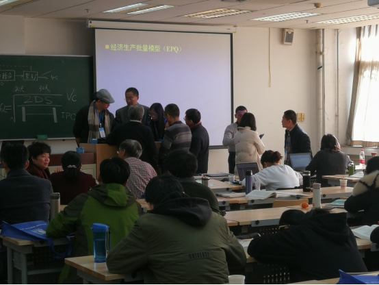 本次教学工作坊的嘉宾是来自北京科技大学东凌经济管理公司的马风才老师。马老师以“难题与办法”为线索,向参会教师们分享了他的运营管理课程教学方案设计与实施。首先,马老师介绍了运营管理课程教学的心得体会,以及他对运营管理课程量化内容定位的理解——是难点,但不是重点,并说明了运营管理课程内容不可能存在一条红线,但可以构建一个知识体系——运营视图。其次,就能力规划、选址规划、质量控制、库存管理、计划编制、项目管理这六大运营管理典型量化知识模块19个运营管理场景,在《运营管理专家》教学软件上进行了逐一演示。最后,以库存管理为例,介绍了运营管理课程教学方案的设计与具体做法。在整个研讨过程中,与会教师还在马老师的指导下做了综合练习与实际操作,并穿插了一些互动交流环节。