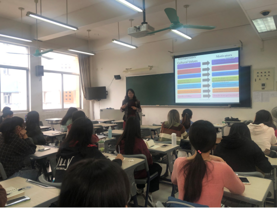 课程伊始,张教授向刚刚结束了期末考试周的同学们提出了这样一个问题:“是什么让你们来到这个课堂?”从同学们的学习原因和激情导入教学,教授接着用全英讲授的英式课堂开启了关于激励力量理论的一场知识盛宴。从激励的内容理论,到过程理论,再到个人抑或文化角度的透视,同学们在旧知识新思考和新知识自我思考的洗礼中获益颇多。