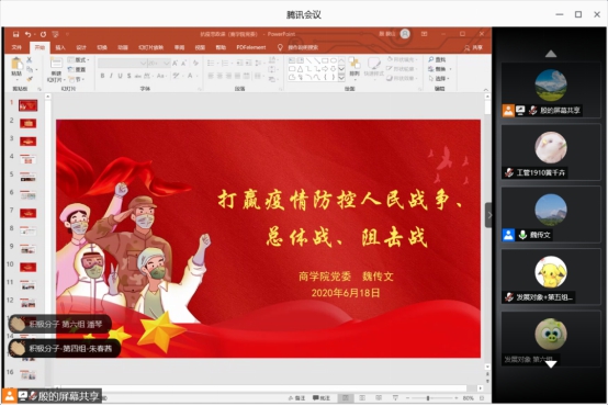 为打赢疫情防控人民战争、总体战、阻击战,深入学习习近平新时代中国特色社会主义思想,提高员工的思想政治水平与综合素质,威廉希尔体育于2020年6月18日举办了两场思想政治课专题线上讲座,此次思政课由商公司党委书记魏传文、经理朱文忠主讲,殷毅山老师担任主持人,2017、2018、2019级本科员工参与学习。