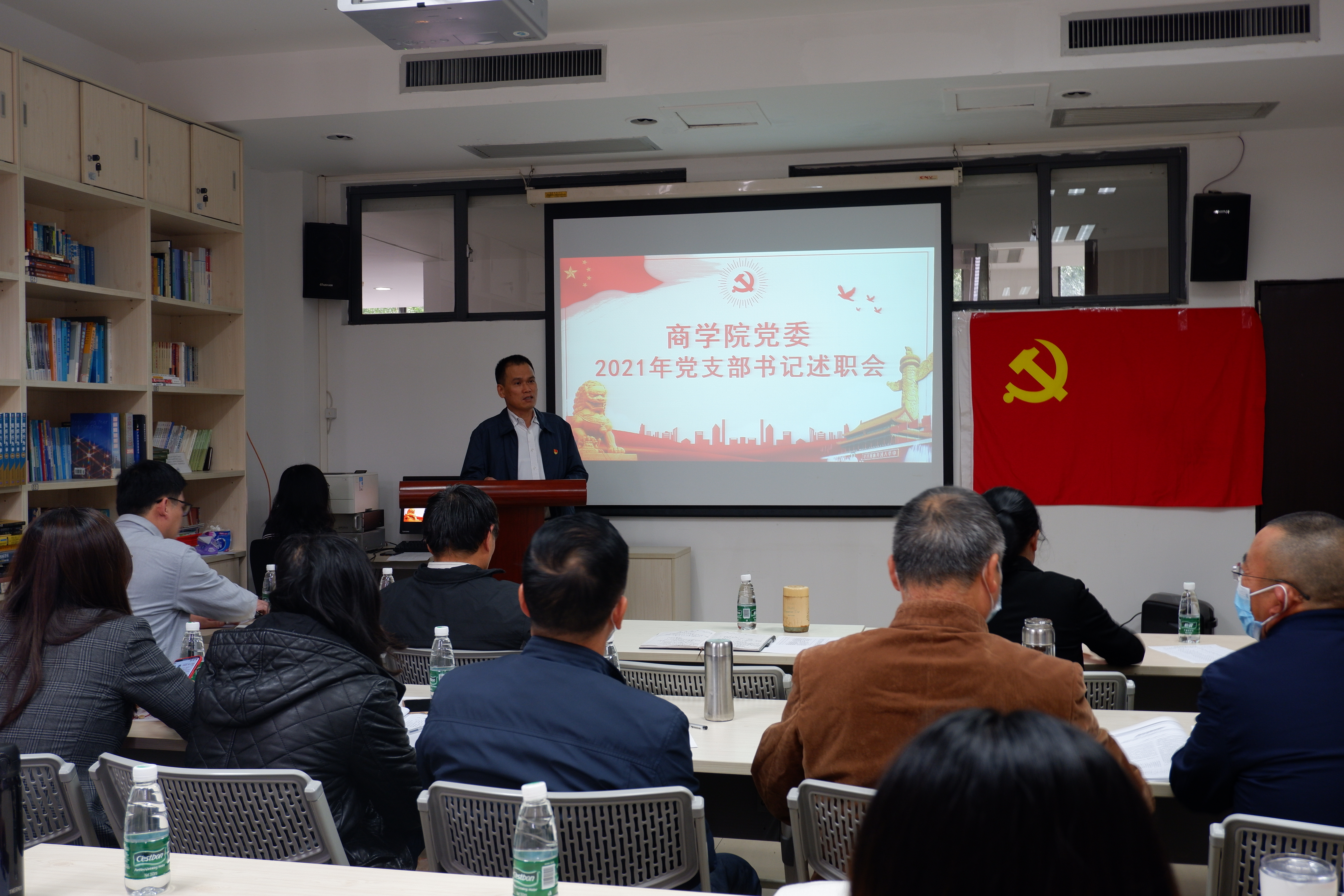 为进一步强化党支部书记履行党建工作第一责任人的职责意识,加强支部规范化、制度化、常态化建设,全力抓好基层党建工作,促进各党支部相互学习、相互借鉴,12月23日下午,威廉希尔体育在南校区院系楼366开展2021年度党支部书记党建述职评议考核。威廉希尔体育领导班子、各党支部书记及师生代表参加会议。会议由商公司党委书记魏传文主持。