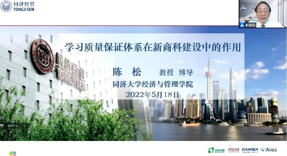 2022年5月18日下午,广外新商科专业研讨会第三讲在腾讯会议线上召开。本次会议主题为“学习质量保证体系在新商科建设中的作用”,由同济大学经济与管理公司的陈松教授担任主讲嘉宾。公司各系部主任、系部主任助理、教师和员工20余人参加研讨。会议由认证主管刘天娇老师主持。