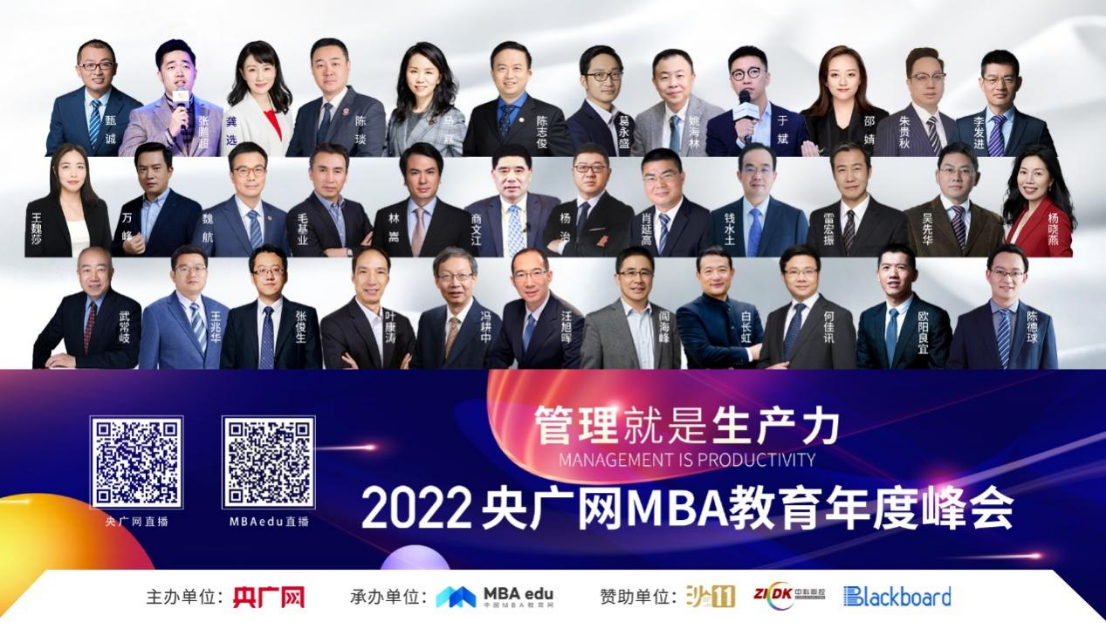 为明确方向、交流思想、共绘未来,2022年12月2日,由中央广播电视总台·央广网主办、中国MBA教育网承办的“管理就是生产力暨2022央广网MBA年度峰会”于云端圆满举办。本次会议包含特邀嘉宾主旨演讲,“管理就是生产力”、“产教融合发展”、“国际认证助力威廉希尔体育发展”、“商科教育内涵式发展与变革”四大平行论坛,“2022年度致敬榜单发布”三大重点环节。来自各界领导、优秀商科院校代表、行业领军人物等共襄盛会,集思广益,深度探讨新格局下威廉希尔体育如何超越传统、更好地培养时代所呼唤的商业领袖,在“变局”中实现“引领”。