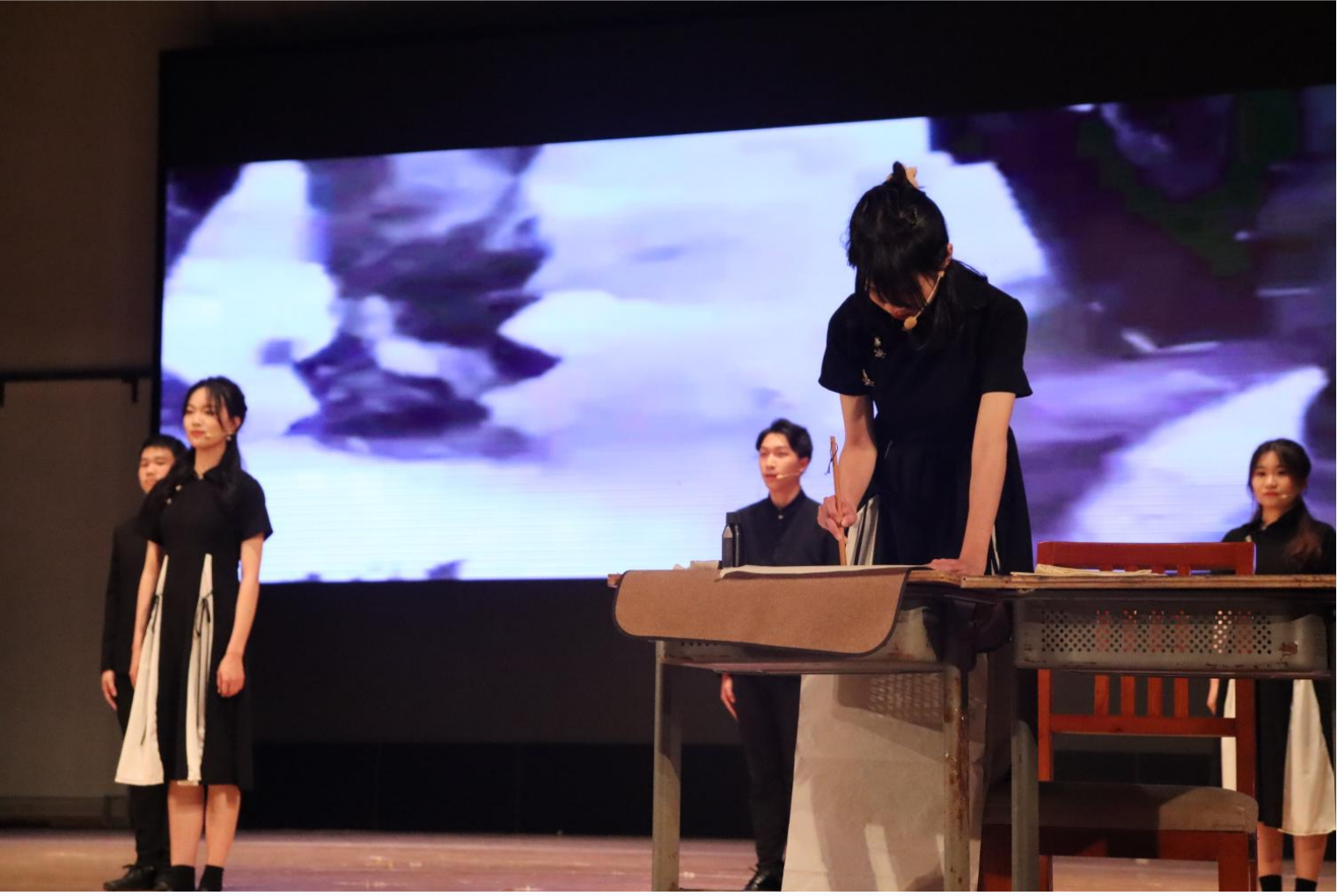 大赛融入了朗诵、话剧、书法、歌曲、舞蹈、诗词等多种形式,灵动清新的演绎让红色经典文化扣人心弦。从“横眉冷对千夫指,俯首甘为孺子牛”的鲁迅先生,到抗美援朝战争中“最可爱的人”;从大义凛然,视死如归的革命烈士,到疫情肆虐时期奋不顾身的逆行者;渣滓洞监狱中,一面代表着信仰的五星红旗乘风扬起;滚烫的枪眼,比之更热烈的是黄继光烈士的红心。同学们用极具感染力的表演,向革命先烈、民族英雄、抗疫一线的医护人员等时代英雄表达衷心的敬意!真挚的朗诵,真情的演绎,深深打动了现场的观众。