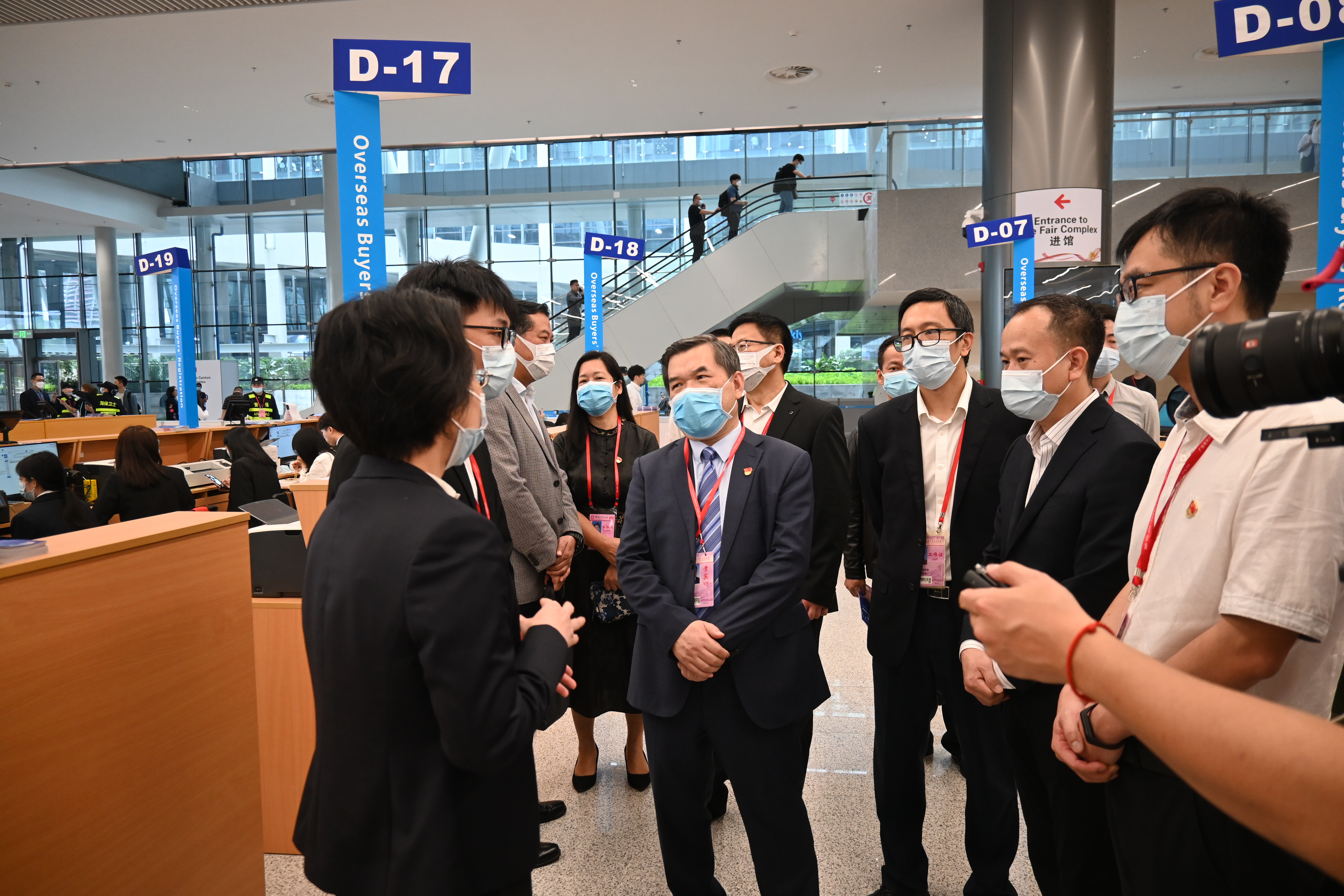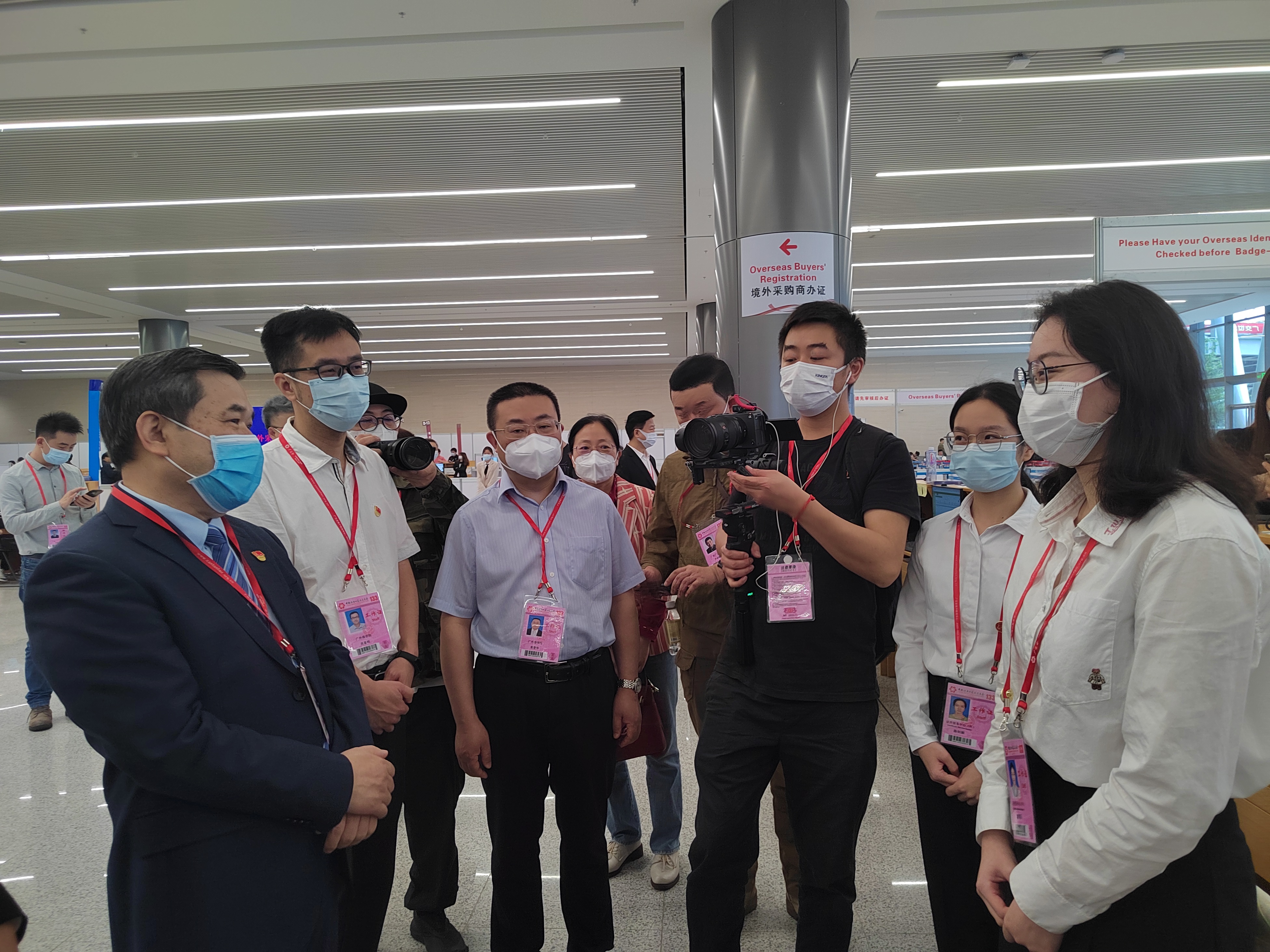 在D区证件中心,焦方太询问了同学们的实习感受,公司2021级员工谢俊辉担任现场助理组长,他说:“非常高兴公司领导老师来看望我们,广交会是一个很好的锻炼平台,现在广交会实习时间已过半,在前半段时间里,收获颇丰,增长了见识,十分感谢公司和广交会方提供的机会。”岗位负责人申蔚介绍了员工的实习情况,对员工踏实肯干、吃苦耐劳的工作态度和高度的责任感表示认可。