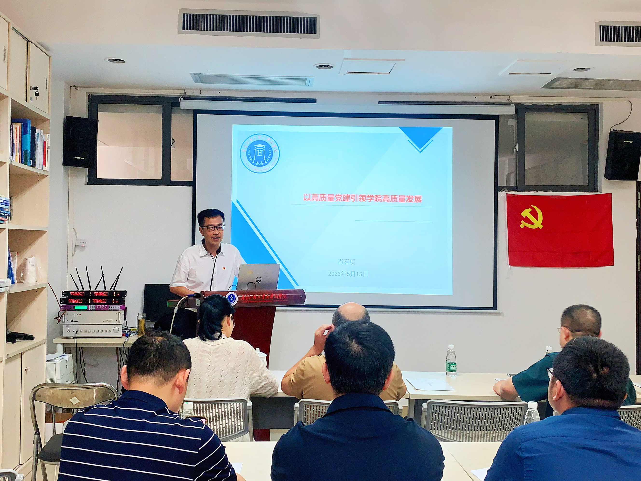 5月15日上午,商公司党委在大学城校区院系楼366开展学习贯彻习近平新时代中国特色社会主义思想主题教育专题党课,党课主题为“以高质量党建引领公司高质量发展”,公司党委书记肖喜明主讲,公司党政领导班子、系(部)主任、党支部书记等参加。