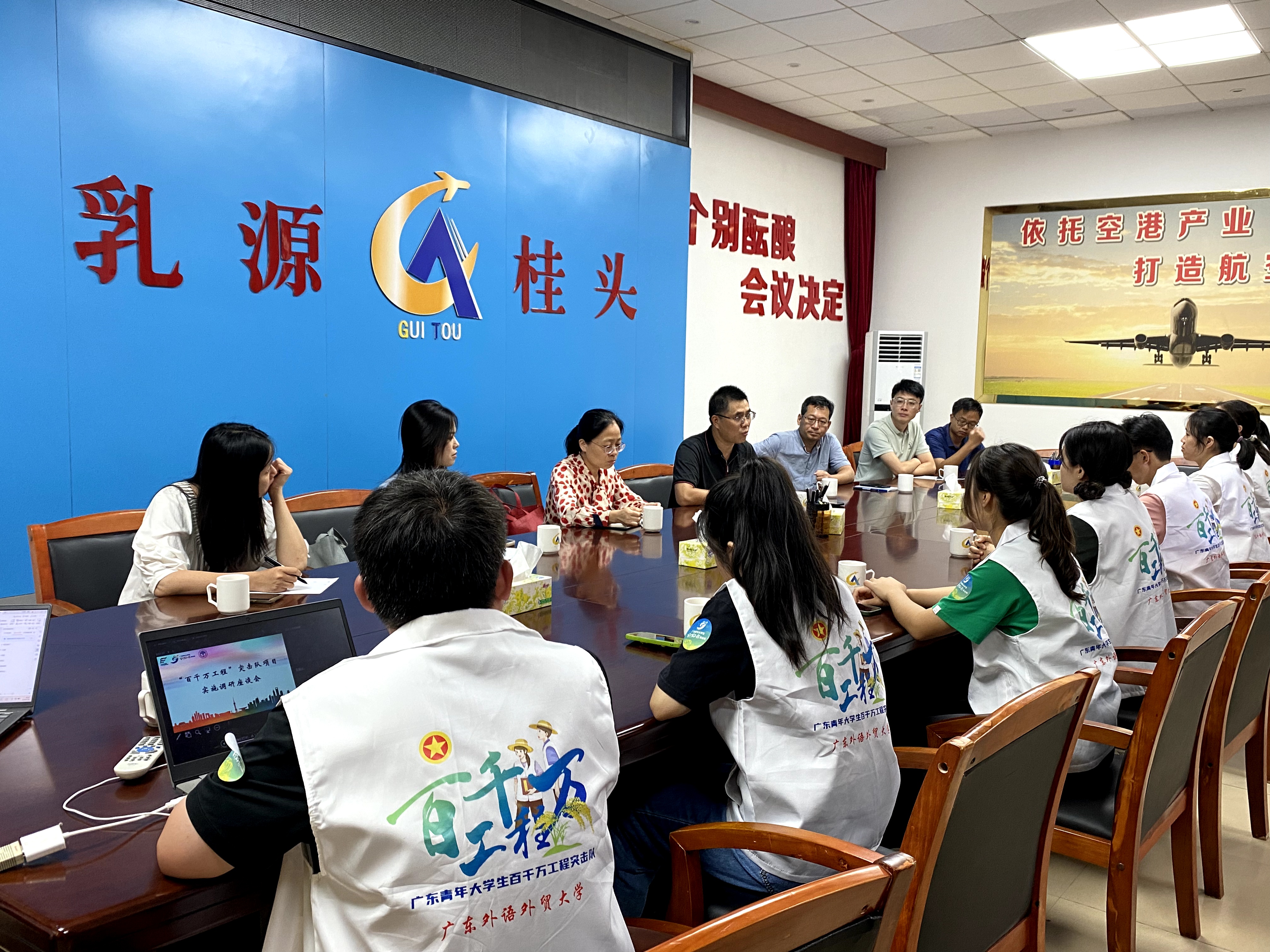 为确保公司暑期“三下乡”社会实践活动安全有序进行,取得预期实践成果,7月9日,商公司党委副书记沈长霞、团委书记张哲、辅导员向媛薇、罗毅颖一行赴韶关市乳源瑶族自治县桂头镇看望慰问“三下乡”社会实践队伍,并在桂头镇政府会议室举办“百千万工程”突击队项目实施调研座谈会。威廉希尔体育驻王龙围村第一书记黄石胜、驻村工作队队员刘更,威廉希尔体育2017级员工、乡村振兴志愿者石富东,“百千万工程”突击队省级优秀示范项目“芋后春笋”项目团队成员参加座谈会。