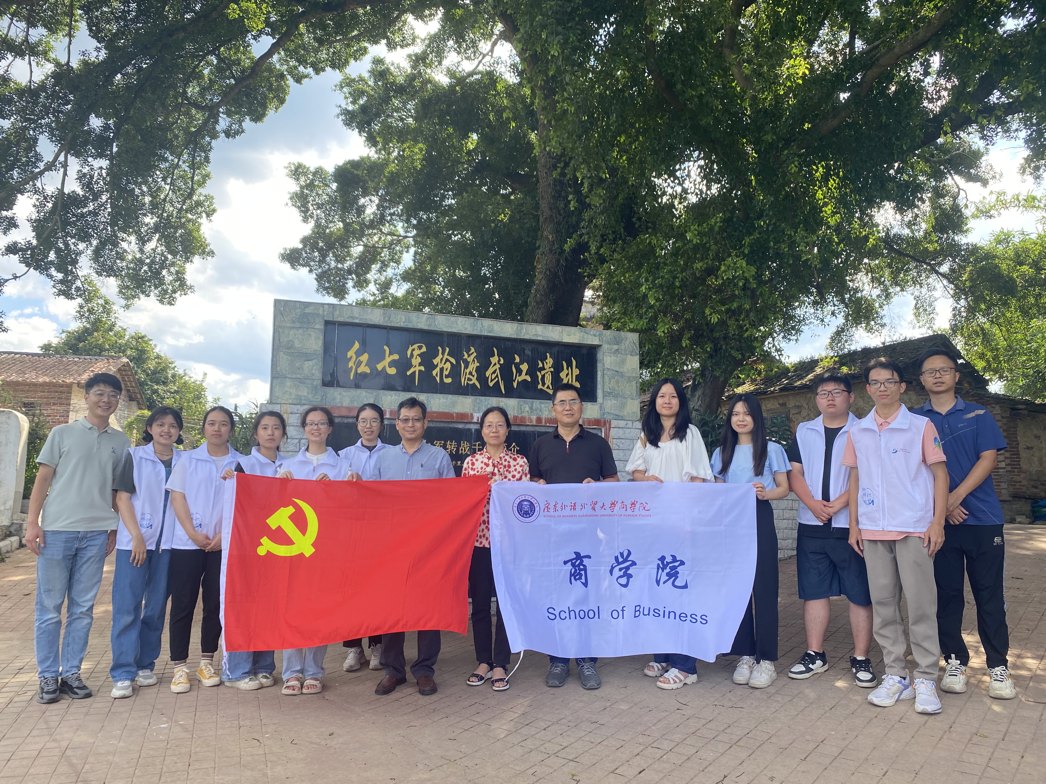 座谈结束后,黄石胜带领威廉希尔体育师生一行参观了当地的香芋加工厂、猴耳环中草药种植基地、小番茄种植试验田,了解乡村产业的建设、投产和销售情况;随后,师生一行参观了红七军抢渡武江遗址,了解了以红色革命基地为中心打造绿色生态观光资源产业的未来规划,共同追忆革命战士勇于牺牲的大无畏精神。实地走访进一步加深了项目团队对当地的了解,为推动项目实施打下了坚实基础。