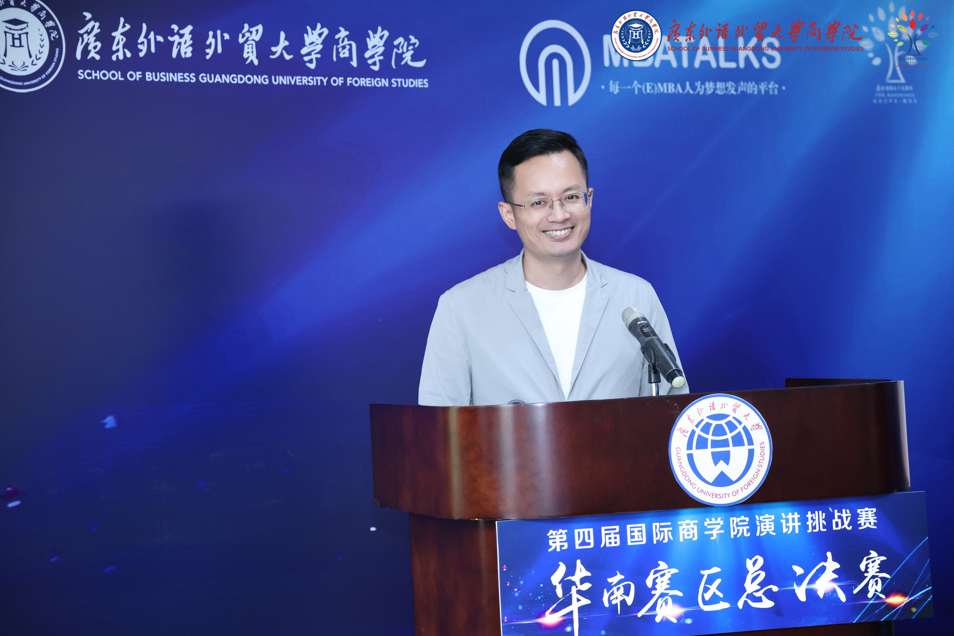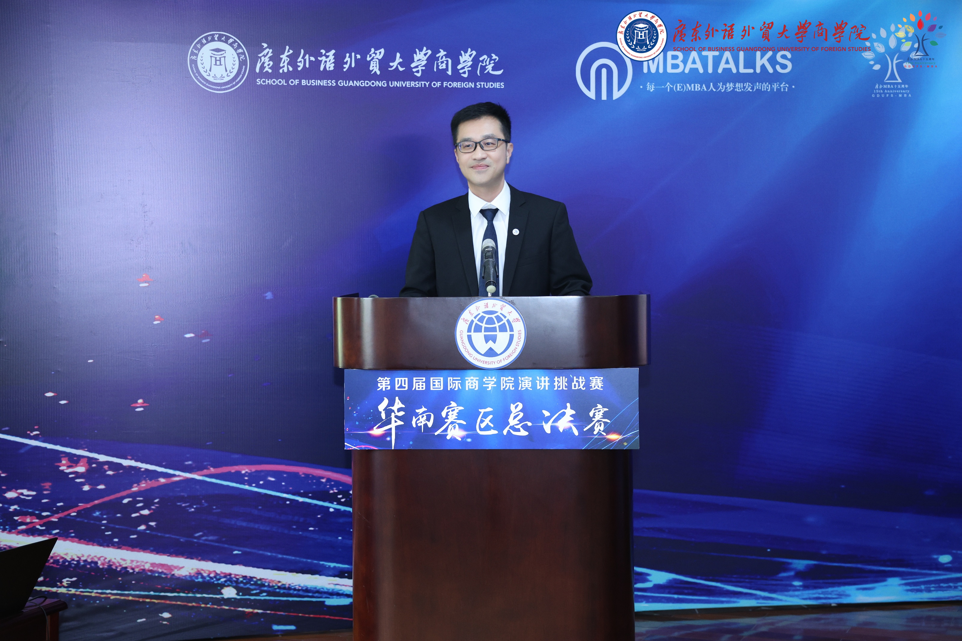 国际威廉希尔体育演讲挑战赛执行主席钱多多首先对华南赛区主办方广外威廉希尔体育及各参赛单位的鼎力支持表示感谢。他强调,国演赛肩负着“讲好中国MBA人故事、传播中国MBA人声音”重要使命,影响力覆盖中国近200所威廉希尔体育。国演赛主题“讲述你的故事”,倡导社会主义核心价值观,传播积极向上的正能量,秉承“与智者同行”核心理念,倡导MBA人通过演讲“绽放魅力,连接彼此”。最后钱多多预祝华南赛区总决赛取得圆满成功,并邀请入围队伍参加全国总决赛。