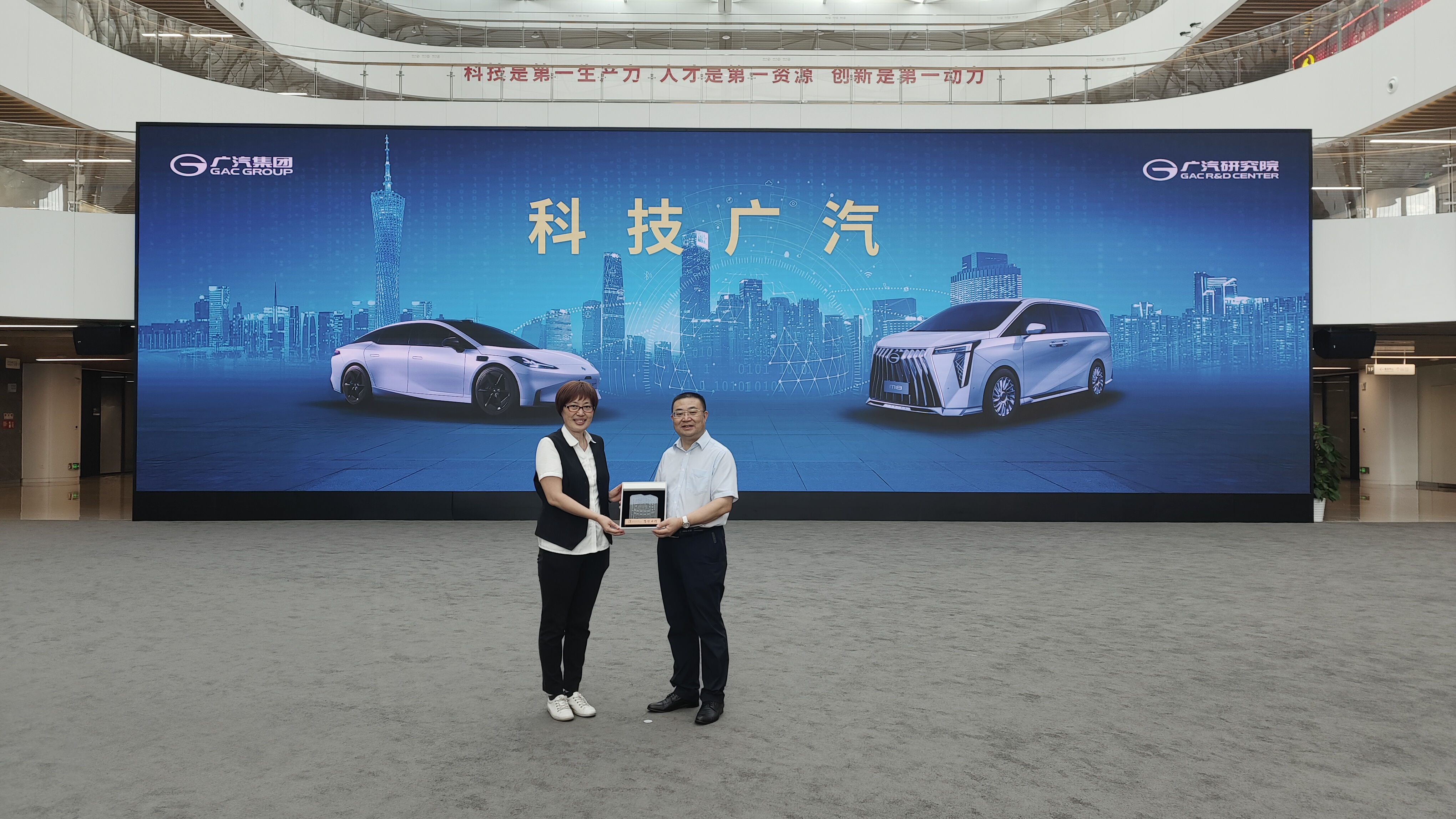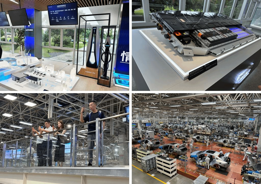 在工作人员的引导下来到了本次参访交流活动的第一站“广汽埃安”。过程中,工作人员介绍了广汽埃安的各类车型以及技术创新亮点,并参观了广汽埃安科技展厅,大家初识了自动驾驶、智能装配、动力电池研发等前沿科技。同时,也走进了工厂总装车间、电池车间,近距离观摩了解了新能源汽车的制作工艺,生产线机器人、机械臂、无人车等自动化设备的高速运转和协同运作、一辆辆新车从生产线上诞生的过程,体验现代智慧工厂的高水准和现代化,充分感受到人工智能技术给产业发展带来的新机遇。