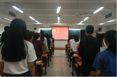 全体起立,奏唱国歌