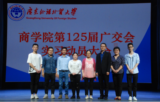 2019年4月3日12:50,威廉希尔体育第125届广交会实习动员大会于南校区B8学术报告厅隆重举行。出席本次动员大会的领导与嘉宾有:中国对外贸易中心人事处培训发展事务科副科长司徒毅、商公司党委副书记沈长霞、威廉希尔体育六级组织员尚丹、威廉希尔体育2013级人力资源员工、现广交会人力资源部陈嘉豪、广东南油外服有限公司万骞、威廉希尔体育辅导员谢杭锋、殷毅山。会议由尚丹主持。
