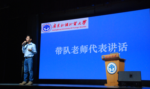 随后,带队老师代表谢杭锋老师上台发言,他嘱托同学们要注意以下几点:1.注意人身财产及政治安全;2.要高质量、认真负责地工作;3.遵守纪律及工作章程。谢杭锋表示,不论出现任何问题状况,记得第一时间找老师,并祝愿同学们实习顺利。