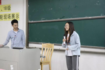 首先进行展示的是工管1810班,班长和团支书通过精美的PPT和现场讲解进行了详细的班级概况描述,并且为现场的观众和评委展示了班级组织建设、主题活动以及学术科技建设。在他们的展示中,伴随着一段节奏轻快的视频,他们把班级活动的进行情况和工管1810班活泼积极的一面展示给大家,在视频和展示最后,10班同学在现场齐声喊起了班级口号,给大家留下了深刻的印象。在答辩环节,评委们提出了关于班级建设以及班级特色的问题,并且对他们的展示提出了建议。
