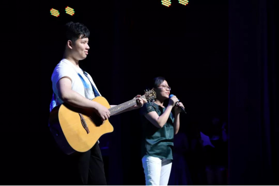 15级创新班吴一帆改编歌词,吉他自弹自唱出自己大学四年的经历和心声,并以一段悠扬的口琴声结束独演,并与随后上台的杨柳老师合演《父亲写的散文诗》。
