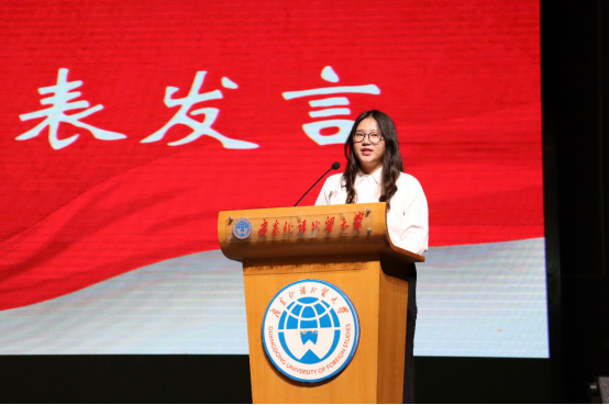 随后,高年级员工代表叶思华同学鼓励新生们尽快适应老员工活,她在知识学习、能力培养以及成长体验方面根据个人经历和大家分享了自己的感悟。新生代表邹曙鸿同学希望在接下来的老员工活中能和全体2019级同学们一同惜时进取、不断拼搏,努力打造出属于自己、属于广外的“独家记忆”,同时他还倡议同学们一同恪守“明德尚行,学贯中西”的广外校训,让自身理想得以实现,让自身价值得到提升,以此成为更好的自己。